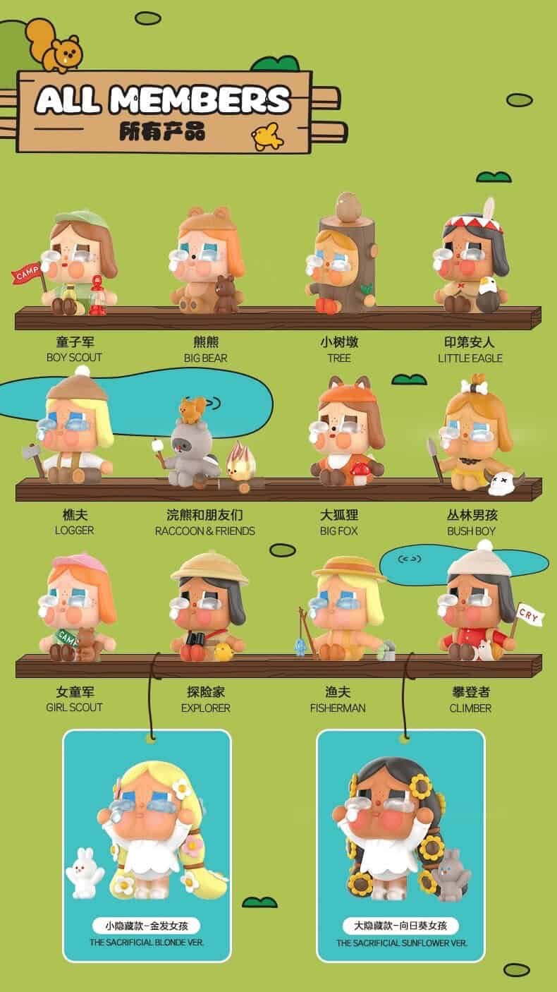 | Style | Bear, Fox, Boy Scout, Bush Boy, Climber, Explorer, Fisherman, Girl Scout, Little Eagle, Logger, Raccoon&Friends, Tree, Small Hidden, Big Hidden |
