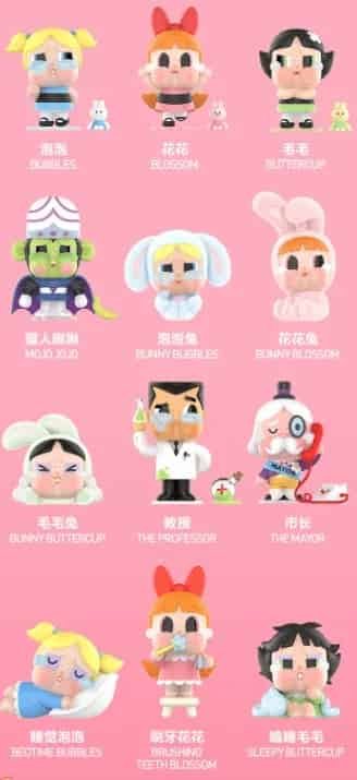 | Style | Bedtime Bubbles, Blossom, Brushing Teeth Blossom, Bubbles, Bunny Blossom, Bunny Bubbles, Bunny Buttercup, Buttercup, Mojojo, Peaceplease, Sleepy Buttercup, The Professor, Hidden |